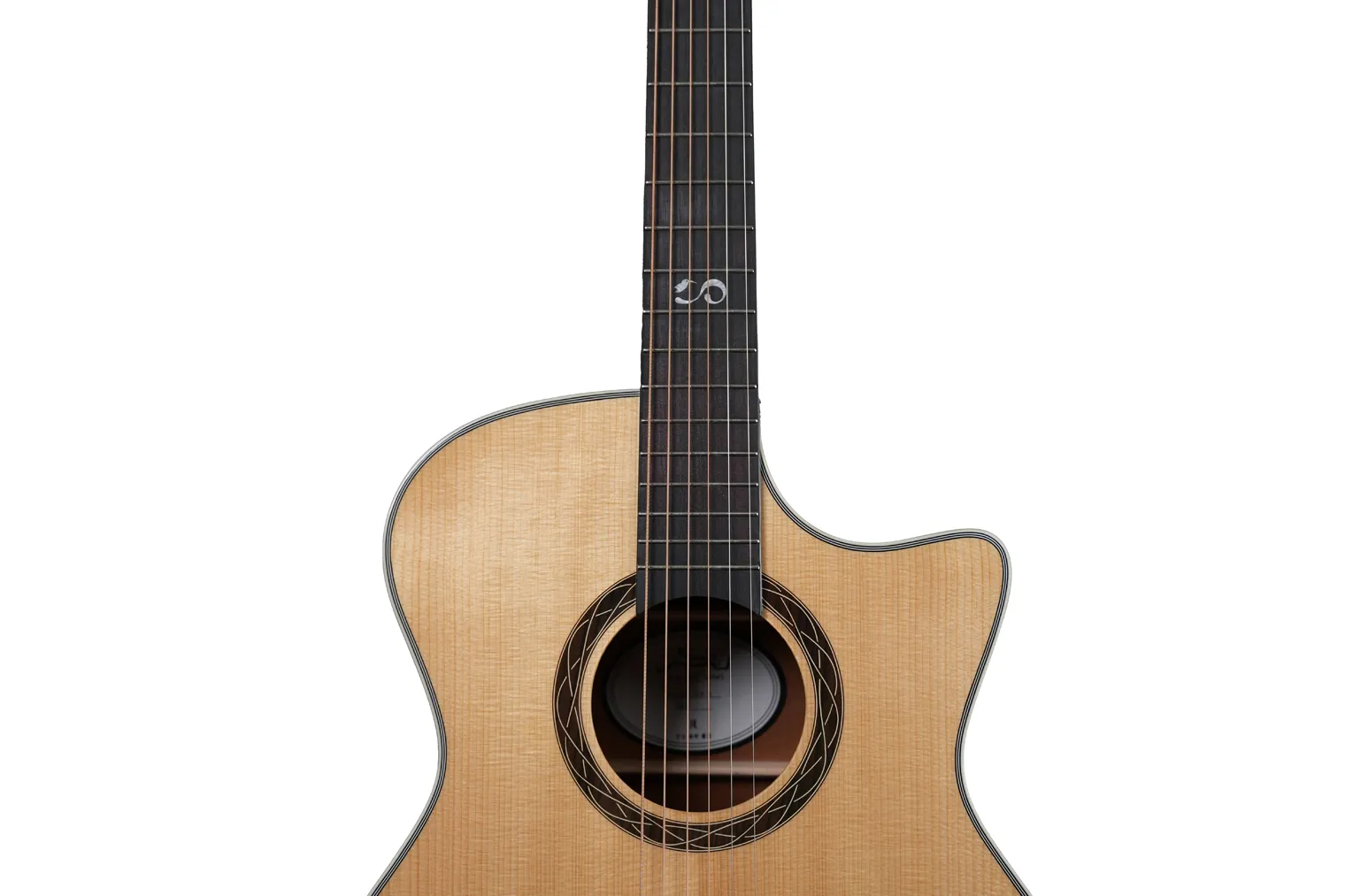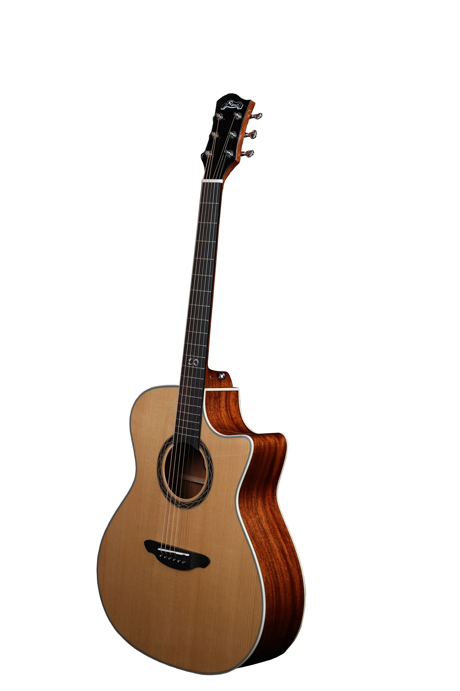 GA-6 NL 40’Acoustic guitar,Cutaway Top: Carbonized European Spruce (Solid ) Back and Side:Mahogany Neck:Mahogany Fingerboard & Bridge:Rosewood Binding:ABS Binding Machinehead: Chrome Die-Cast String: D'Addario XT