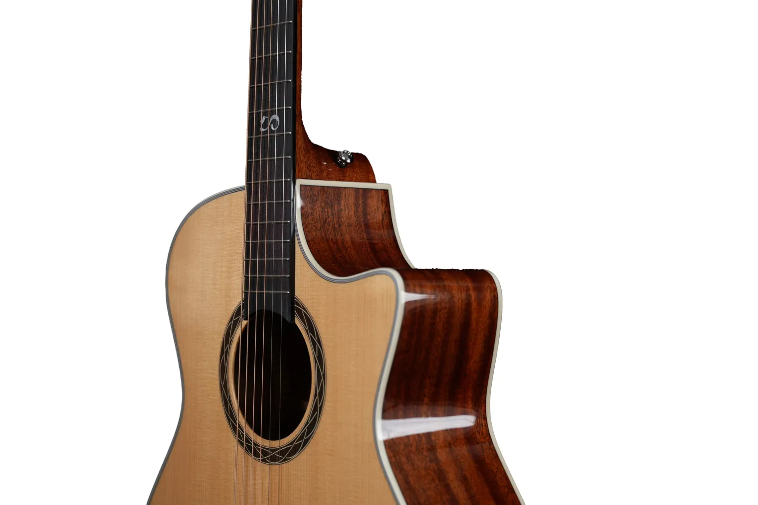 GA-6CE NL 40’Acoustic guitar,Cutaway Top: Carbonized European Spruce (Solid) Back and Side:Mahogany Neck:Mahogany Fingerboard & Bridge:Rosewood Binding:ABS Binding Machinehead: Chrome Die-Cast String: D'Addario XT EQ:Double OS1