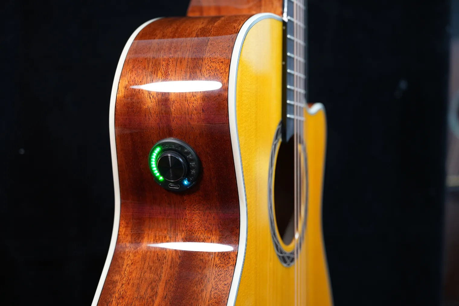 GA-6CE YW 40’Acoustic guitar,Cutaway Top: Carbonized European Spruce (Solid) Back and Side:Mahogany Neck:Mahogany Fingerboard & Bridge:Rosewood Binding:ABS Binding Machinehead: Chrome Die-Cast String: D'Addario XT EQ:Double OS1