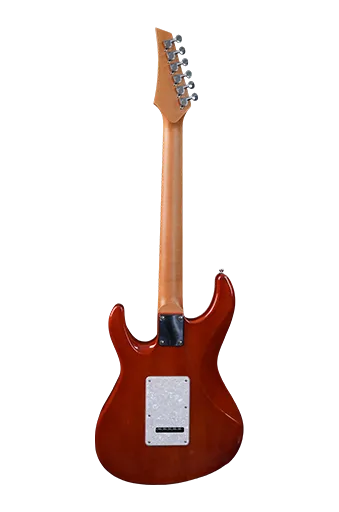 HEG-380 Electric guitar Top: Polar with Quilt Maple Veneer Neck: Carbonized Maple With Matt Fingerboard:Rosewood Machinehead: Chrome Die-Cast Pickup:S,S,H Pickguard: White Pearl Control:1V,2T,5W