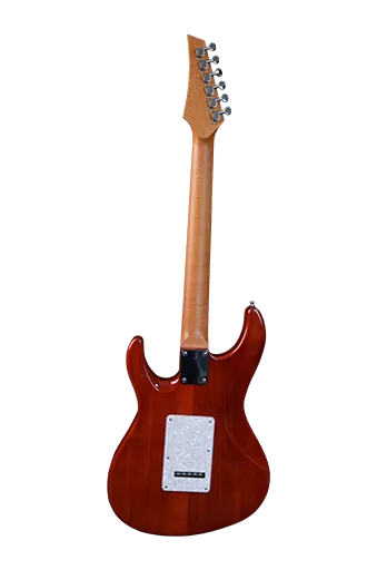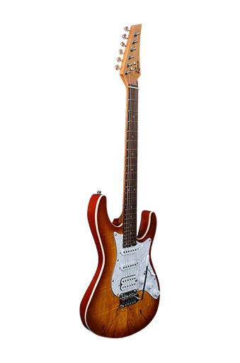 HEG-381 Electric guitar Top: Polar With Spalted Maple Wood Veneer Neck: Carbonized Maple With Matt Fingerboard: Rosewood Machinehead:Chrome Die-Cast Pickup:S,S,H Pickguard: White Pearl Control:1V,2T,5W