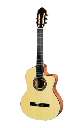 LC-3952C 39’Classical guitar, Cutaway Top: Spruce Back and Side:Quit Maple Neck: Okume Fingerboard & Bridge: Rosewood Machinehead: Chrome-Plate 3 Machinehead Binding: ABS Binding + 5Layers