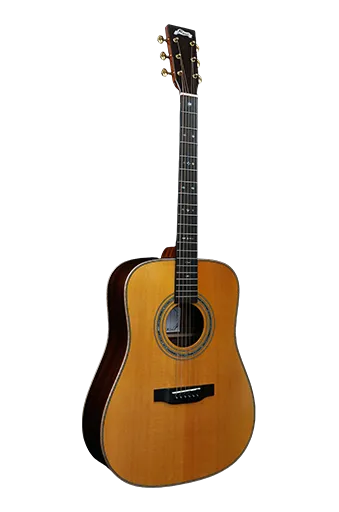 RA-30 41’Acoustic guitar Top: Sitka Spruce(Solid) Back and Side: Indian Rosewood(Solid) Neck: Mahogany Fingerboard and Bridge:Ebony Binding: Maple Nut&Saddle: Bone Machinehead: Gold open