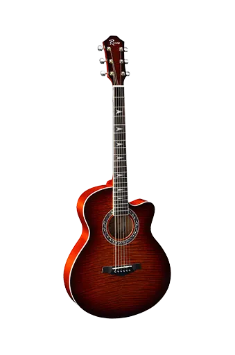 RA-A01C 40’Acoustic guitar, Cutaway Top: Linden with Flame Maple Back and Side: Linden Neck:Okume Fingerboard & Bridge:Rosewood Binding:ABS Binding Machinehead: Chrome Die-Cast